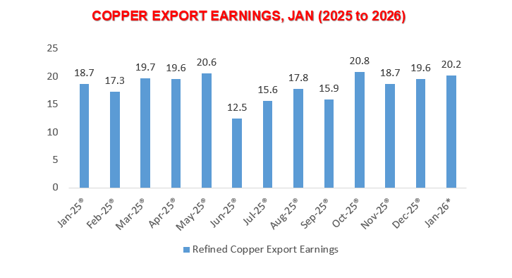 Latest News Copper Export Earnings, January(2025 – 2026) Export earnings from refined copper increased by 7.3 percent from K19.6 billion in December 2025 to K20.2 billion in January 2026. Refined Copper export volumes increased by 7.3 percent from 72.8 thousand Mt in December 2025 to 78.1 thousand Mt in January 2026.** Read more>>Vol 275 of […]